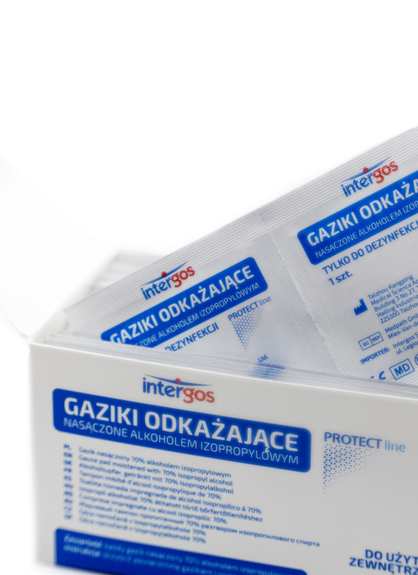Produkt jest przeznaczony wyłącznie do użytku zewnętrznego. Gaziki są sprzedawane w oryginalnym opakowaniu producenta zawierającym 100 sztuk produktu pakowanego osobno w wygodne listki zapobiegające utracie wilgoci.